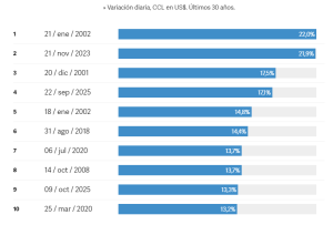 Con este espaldarazo, el índice Merval logró cerrar con una mejora de 31% medida en dólares con lo que borra casi la totalidad de la caída que había acumulado este año. Se trata de la suba más alta para un solo día en los últimos 30 años.