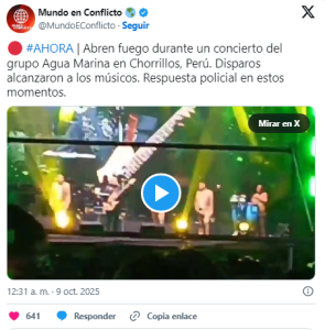 Balacera en pleno concierto de cumbia en Perú deja cuatro heridos