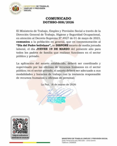 La disposición se enmarca en la conmemoración del Día del Padre boliviano, una jornada en la que se reconoce el rol de los padres en la familia y la sociedad.