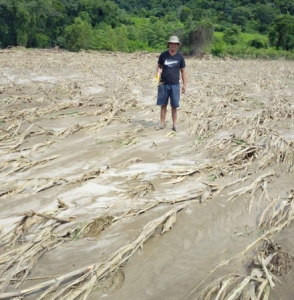 El alcalde de Vallegrande, Ignacio Morón, lamentó que la riada haya impactado a una gran cantidad de productores locales dedicados principalmente al cultivo de maíz, arroz y caña.