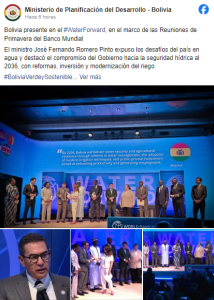 En el marco de las Reuniones de Primavera del Banco Mundial, el ministro Romero participa en el evento Water Forward, una iniciativa global orientada a fortalecer la seguridad hídrica, en donde la autoridad “reafirmó el compromiso del país en acelerar el desarrollo y mantener un sano equilibrio con el medio ambiente”.