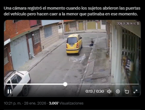 La menor vivió momentos de terror, pero un error de los delincuentes evitó que el intento de secuestro se consumara. En Bogotá, Colombia, una cámara de seguridad registró el angustiante instante en el que una niña estuvo a punto de ser raptada, luego de ser interceptada por sujetos que se movilizaban en un taxi.