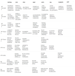 En el caso de los asambleístas por población (AP), la disputa se concentra especialmente en Cercado, dividido en tres circunscripciones. Allí, PATRIA apuesta por Rodrigo Delgado, Ruth Gutiérrez y Hugo Morales, mientras que CDC postula a Marco Gutiérrez, Gisela Derpic y Carlos Oña.