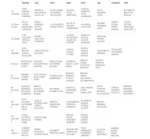 Por su parte, CDC también logra cobertura total, destacando figuras como Mariela Baldivieso en Cercado y Stefany Muguertegüi en Arce. Además David Rodrigo Notta Suarez lidera la lista en Gran Chaco, Edwin Sanchez Tejerina en Avilés, Carla Nicole Bolivar en Méndez y Jose Bruno Bleichner Vera en O’Connor.